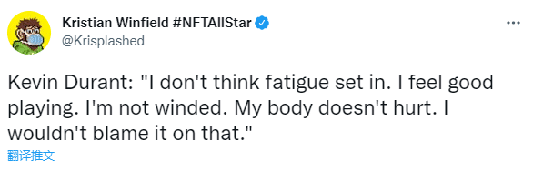 杜兰特本人回应:说实话,整个系列赛,我只是想太多;谈到绿军防守奏效,杜兰特表示他们的体型比我们大;杜兰特还表示:我不疲劳,我打球感觉很好,我没有气喘吁吁,我的身体没有受伤,我不会责怪它。