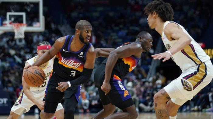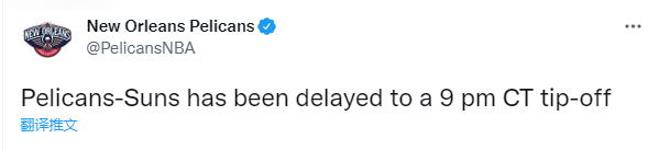 由于老鹰和热火G3比赛被迫推迟半个小时,鹈鹕和太阳系列赛G3也顺势推迟30分钟,推迟到今天上午10点开打;今日一战,布克因腿筋伤势而缺席比赛,太阳被迫变阵,有记者报道沙梅特将顶替布克首发出战,但太阳主帅蒙蒂还没确定让谁顶替布克。