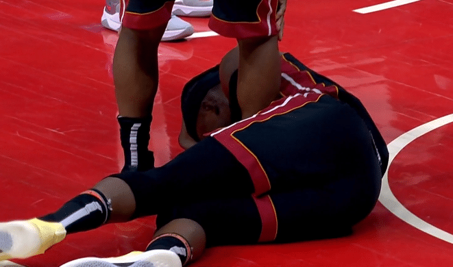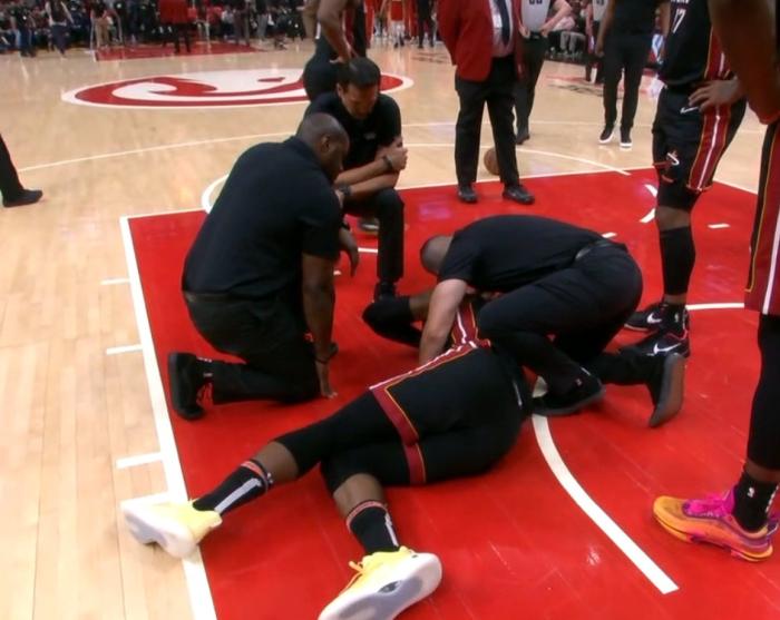 顺便提一下,热火和老鹰G3比赛才打1分13秒,场上发生惊险时刻,第一节9分47秒,巴特勒在一次上篮时撞在科林斯的身上,撞到腹部后痛苦倒地,热火队医赶紧过来检查巴特勒的身体,所幸巴特勒的身体无碍,继续留在场上比赛。