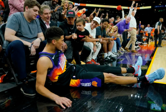布克在G2的上半场表现出色,轰下31分和7个三分球,但他在第三节还剩4分45秒时,布克在回防海耶斯的一次扣篮时,拉伤了腿筋。他立刻请求暂停,然后返回更衣室检查,随后虽然回到替补席,但不再出战。很快,太阳官方宣布布克腿筋受伤,不会在这场比赛里继续上场。鹈鹕125-114击败太阳,拿走了G2的胜利。