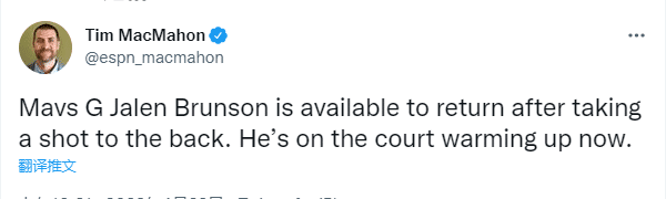 JRS直播04月22日讯 ,NBA季后赛独行侠客场对阵爵士,系列赛G3东契奇因伤继续休战,东契奇还没复出,独行侠另一主力险受伤,布伦森被爵士悍将故意撞倒,捂着腰部一瘸一拐离场并返回更衣室,所幸伤势无碍,下半场可以继续出战。
