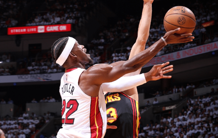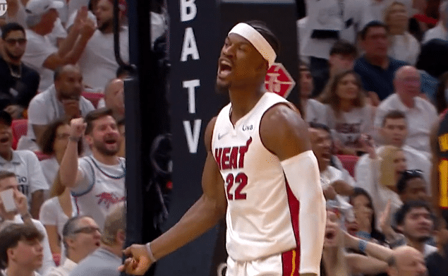 JRS直播04月20日讯,NBA季后赛热火主场再次击败老鹰,系列赛大比分2-0领先,巴特勒全场出战39分钟,25投15中、三分7中4和罚球12中11,狂砍45分5篮板5助攻2抢断,得分创季后赛生涯新高,怒吼以及抓筐拍板庆祝,末节把球鞋拼掉了,关键56秒连得7分太狠。