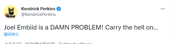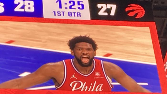 系列赛G2第一节,恩比德单节6投4中、罚球12中11轰下19分,与阿奴诺比推搡冲突后,大帝开启得分模式,多次造犯规罚球得分,西亚卡姆早早2犯,恩比德单节12次罚球,远超猛龙全队(全队单节5次罚球);恩比德单节19分太狠,名嘴帕金斯发推直言:恩比德是一个大麻烦。