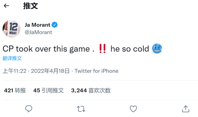 保罗末节疯狂表现也引来众球星和美媒的盛赞,莫兰特、库兹马等众球星也是纷纷发推向保罗致敬。
