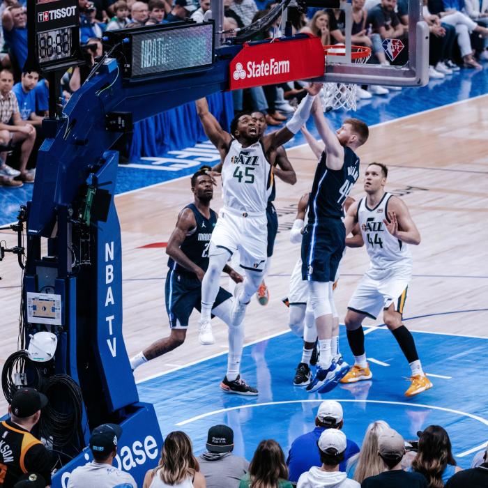 本场比赛是在凌晨1点开打的,爵士在第三节结束时最多领先到12分,末节独行侠疯狂反扑,关键时刻奥尼尔投进三分,米切尔连续四罚顶住压力,而东契奇因伤缺战,坐在替补席一脸无奈和不甘心;米切尔全场32分6篮板6助攻,戈贝尔仅投1次,拿到5分17篮板。