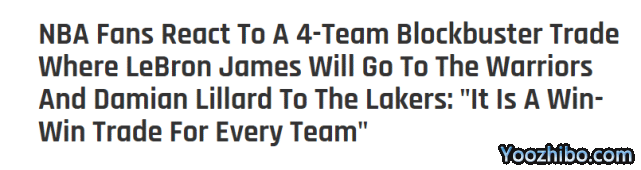 JRS直播04月16日讯 ,美媒Fadeaway World晒出了一笔涉及4队的大交易方案,这笔交易方案相当劲爆,可以让詹姆斯联手库里,勇士能打造新的豪华阵容冲击总冠军。