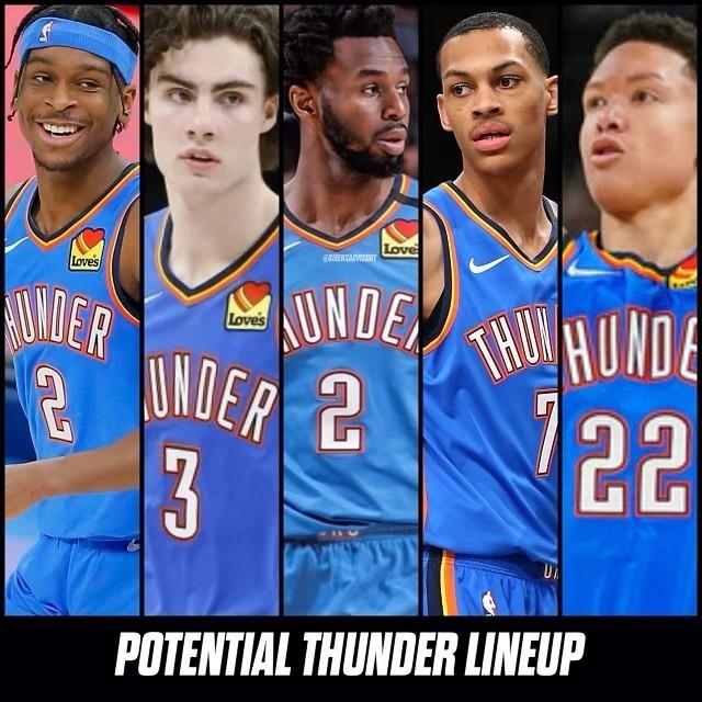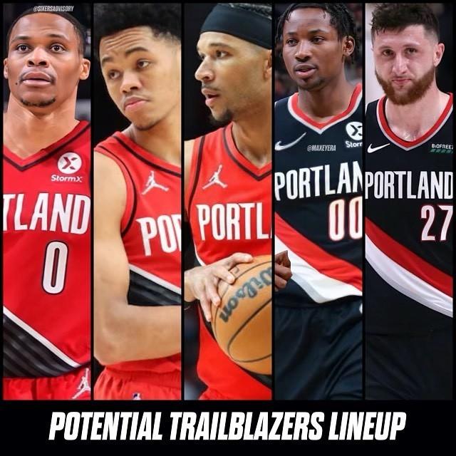 美媒还晒出了开拓者和雷霆的交易后潜在主力阵容。开拓者是威少+西蒙斯+哈特+库明加+努尔基奇,雷霆是亚历山大+吉迪+维金斯+巴兹利+罗比。