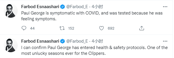 快船与鹈鹕生死战,乔治因感染新冠而缺席冲击季后赛的关键一战,据快船记者报道,乔治是有症状患者,即使快船晋级季后赛,恐怕乔治也会缺席多场比赛;对于乔治缺战鹈鹕,快船总裁表示为乔治感到难过,还表示这是球队的另一个挑战,对球队仍有信心,我们的阵容有深度,还有出色的主帅泰伦-卢。
