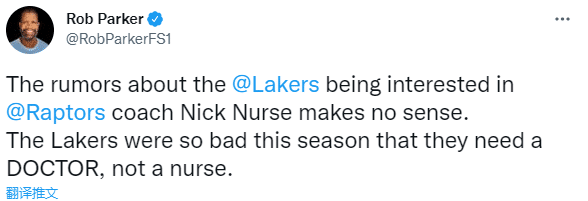 JRS直播04月12日讯 ,纳斯和里弗斯也是湖人潜在新帅候选人,对于湖人选帅,NBA记者Rob Parker发推写道:传言湖人有意让纳斯当新帅毫无意义,湖人打出糟糕的赛季,他们需要一个医生,而不是一名护士。
