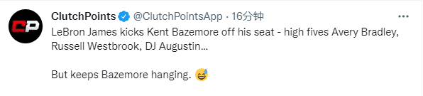 贝兹莫尔主动让座,伸手想要和詹姆斯击掌却遭无视,美媒晒出这一幕;如此画面不禁令人想起“人类击掌精华”约什-哈特,他曾多次想和队友击掌遭无视。