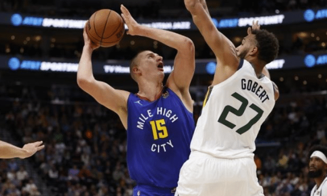 爵士赢12分的那场球,约基奇因伤只打了15分钟,9投8中,得到24分6篮板6助攻,个人正负值是+7;戈贝尔8投7中,得到23分16篮板,个人正负值+10。