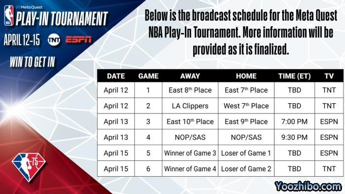 附加赛第三场4月14日 东部第十VS东部第九 时间上午7点
