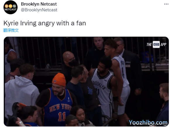JRS直播04月07日讯 ,篮网和尼克斯纽约德比正式打响,杜兰特和欧文带队在麦迪逊花园球馆打比赛,上半场篮网50-67落后17分,中场休息时,欧文和纽约球迷发生口角,返回更衣室前中途折返,和一位球迷发生争执。