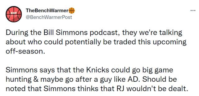 名嘴比尔-西蒙斯在今天的节目上爆料潜在的交易。“我认为尼克斯愿意为他出高价,他们已经准备好今年夏天出手了!”西蒙斯还提到尼克斯的非卖品只有巴雷特,其他球员都可以被交易。前不久,尼克斯刚刚传出兰德尔不开心的消息,他是有可能和尼克斯分道扬镳的球员。