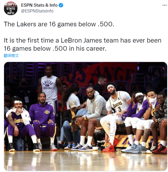 JRS直播04月04日讯 ,湖人6连败后31胜47负排名西部第11位,据统计,这是詹姆斯职业生涯首次所在球队距离50%胜率差16个胜场,此前最大差距是其新秀赛季的32胜47负(2004年4月10日),差15个胜场。