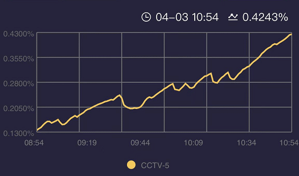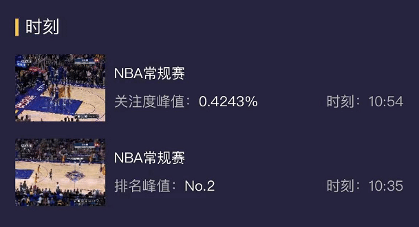 这场比赛央视进行了直播,巅峰时刻的收视率高达0.4243%,在同时间段排名全国第二,这也是央视复播NBA以来的最高数值。从收视率的数据统计来看,上半场的收视率很低,当第三节勇士疯狂反扑,以及末节一波18-0攻击波的时候,收视率属于是“直线攀升”的状态,外界的关注度持续升高。