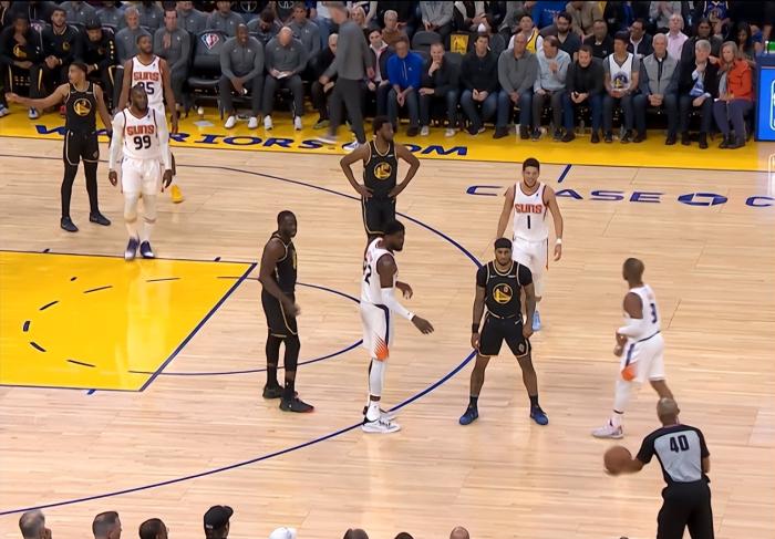 首节的比赛开始后,勇士进攻端的表现不好,艾顿内线轻松打中,普尔跳投命中帮助勇士打破得分荒,此后勇士连续进攻不中,布里奇斯先是跳投命中,随后上篮打成2+1,布克三分命中,太阳取得了12:2的开局,科尔叫出暂停。这段时间勇士的防守没有什么问题,但是进攻端表现太糟糕了,另外对于勇士不利的是,打了3分钟的时间,克莱就2次犯规了,维金斯的表现也依旧低迷,面对比较矮很多的保罗,篮下要到很深的位置打不中,空位投射也没有。