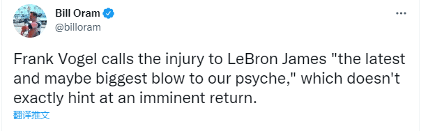 对于詹姆斯受伤,沃格尔表示:詹姆斯的受伤是对球队士气“最近的、也许是最大的一次打击”。