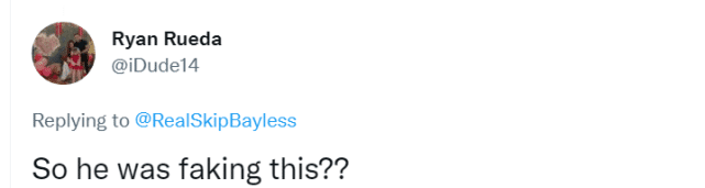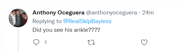 不得不说,贝勒斯真的是把“黑詹姆斯”的人设站的稳稳的。不少球迷怒喷贝勒斯,还有球迷晒出詹姆斯受伤的一幕,并回复道:“所以他这也是装的?”还有球迷质问贝勒斯,认为他胡说八道:“你看到过他受伤的脚踝吗?”