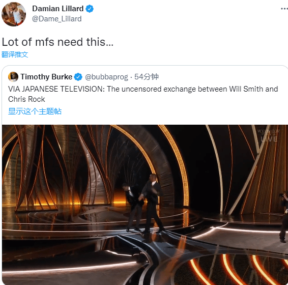 JRS直播03月28日讯 ,在奥斯卡颁奖典礼上,发生意外打人事件,著名影星威尔-史密斯掌掴主持人克里斯-洛克,冲突热搜引爆社交网络;湖人躺枪,多名NBA球员发推惊叹以及看热闹。