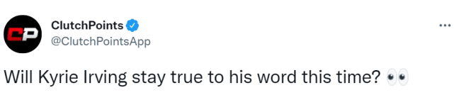 美媒clutchpoints晒图提问:“欧文这次会信守诺言吗?”欧文在2013年谈到是否会离开骑士时,他说:“不,我不会离开,我不会离开!”他在绿军也承诺过续约,现在,轮到篮网了?