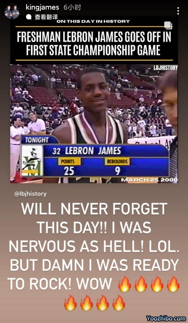 照片上的詹姆斯稚气未脱,他那场比赛的数据是25分9篮板。看得出来,面对媒体的采访,他还有些局促。詹姆斯本人回应道:“永远不会忘记那一天!我那时候真的很紧张!但该死的!我已经准备好了!!WOW!”