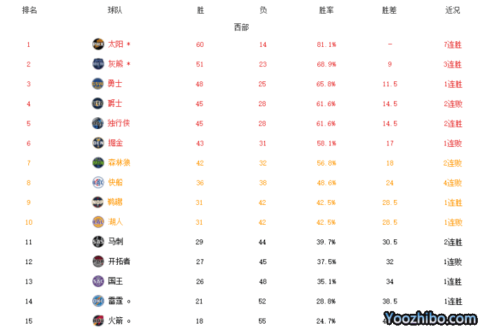 JRS直播03月27日讯 NBA常规赛进行到最后的冲刺阶段,西部季后赛附加赛的席位争夺非常激烈,目前鹈鹕和湖人都是31胜42负,分别排在西部第9和第10名,而第11名的是马刺,他们与身前的鹈鹕和湖人还差2个胜场。3支球队都只剩下9场比赛,将会争夺2个附加赛的席位。很显然马刺目前处于被动中,但他们接下来的依旧有机会。