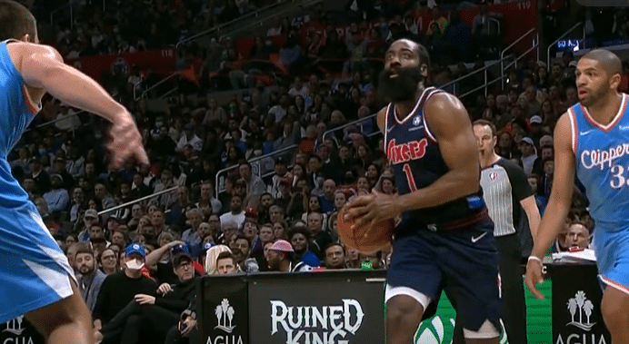 第二节,快船连续追分,哈登出场,他命中三分球,帮助球队稳住局面。哈登和恩比德连线,助攻后者上篮打进。小莫里斯3秒违例,哈登罚球得分。恩比德卡位,哈登连续在外线出手命中,分差重新回到20分。哈登抛投不中,但他很积极的自投自抢,打成2+1。上半场的哈登砍下25分11篮板2助攻的数据,表现非常强势,在球队需要自己的时候站了出来,领先21分。