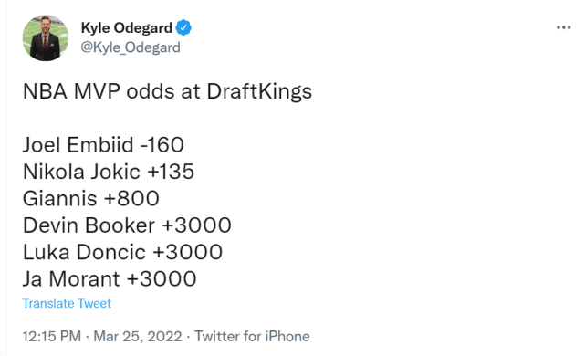 JRS直播03月25日讯 ,布克轰下49分,率领太阳锁定联盟第一的战绩。欧文第一时间发推,认为布克应该当选本赛季的常规赛MVP,而刚刚更新的MVP赔率榜上,布克排名飙升至第四,与莫兰特、东契奇并列,前三位依然是恩比德、约基奇和字母哥。