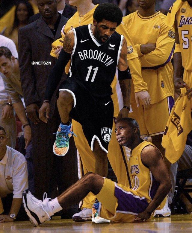 有球迷晒出P图调侃,欧文最终战胜了纽约市长。P图上,欧文跨过了亚当斯,而原图是76人时期的艾弗森跨过了当时效力湖人的泰伦-卢。