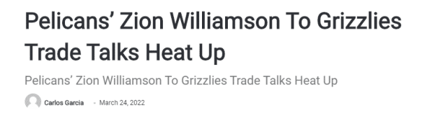 美媒列出了锡安的4大交易方案,潜在下家包括76人、老鹰、公牛和灰熊,其中,锡安去灰熊的讨论是最热烈的。