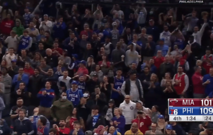 马克西命中这球之后,穿着便装在场边观战的恩比德也非常兴奋,他朝着马克西大吼庆祝。现场球迷也已经坐不住了,纷纷起立欢呼。全场比赛,马克西轰下28分5板4助,米尔顿拿下20分,科尔克马兹18分,哈里斯14分,尼昂15分。而热火方面虽然5人上双,但关键时刻未能顶住。