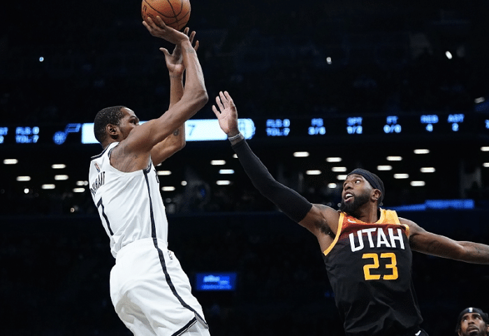 下半场,第三节篮网20-11瞬间拉开分差,克拉克森等人得分时,杜兰特连续命中两记三分球,领先到16分稳住局面,暂停回来,杜兰特无解中投,外线造犯规三罚全中,单节独砍15分,篮网第三节38-24打爆爵士,领先16分进入末节。