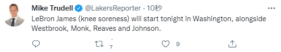 昨天湖人客场加时击败猛龙,詹姆斯全场出战45分钟轰下36分9篮板7助攻,湖人赢球另一大功臣是威少——第四节最后时刻抢断并且投进绝平三分球,加时赛生死时刻助攻布拉德利投进制胜三分;而今天客场背靠背作战,詹姆斯拒绝轮休,赛前做出出战的决定。