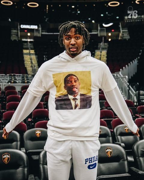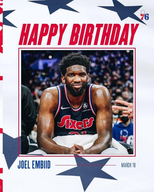 早些时候,76人官方为恩比德送上生日祝福,如今他们又晒出了队友们为恩比德庆生的特殊方式。大家都穿上了一件定制上衣,上衣正面是恩比德的头像,也是他著名的表情包之一。哈登、马克西、塞布尔都穿着这件上衣,露出微笑。