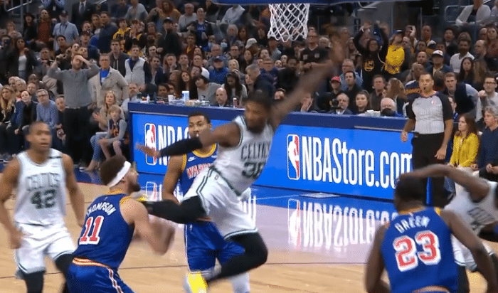 勇士发动快攻,汤普森上篮时被斯玛特踢到手臂,斯玛特摔倒,如此一幕引热议,科尔冲着裁判怒吼咆哮,大喊斯玛特想要伤害汤普森;裁判回放之后吹罚斯玛特一级恶意犯规。