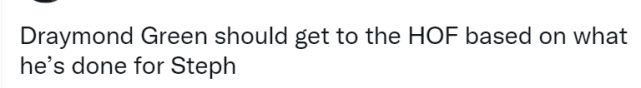 追梦昨天的6次助攻里,有3次是给到库里,非直接的助攻,也能帮到库里。有球迷调侃追梦:“就靠他为库里做的这一切,追梦都应该能入选名人堂了。”当然,这只是球迷的个人观点,追梦要入选名人堂的硬荣誉也有不少。比如他拿到3个总冠军,4次入选全明星,6次入选最佳防守阵容,还在2016-17赛季成为最佳防守球员。