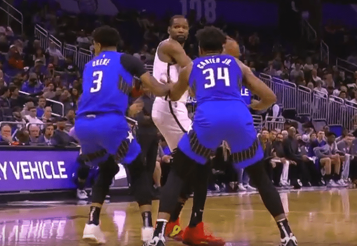 暂停回来班巴三分命中,欧文三分回应,富尔茨三分也有,爱德华兹空接暴扣得手,两队都保持着超高的命中率,德拉蒙德内线连续吃饼,奥基基三分命中回应,场边进入暂停,欧文中投再中,爱德华兹三分命中,随后杜兰特送妙传,爱德华兹单臂飞翔暴扣得手并且造成犯规,罗斯三分造犯规,篮网挑战成功,杜兰特再送助攻,克拉克斯顿暴扣得手,杜兰特中投也中,首节打完,篮网48:30领先魔术,首节的比赛,杜兰特5中4得到了10分5助攻,欧文主8中6得到了16分,篮网全队27投20中。