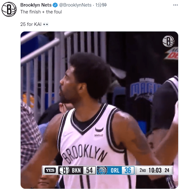 欧文首节高效轰下16分,杜兰特则是5投4中贡献10分,篮网双巨单节26分带队48-30打爆魔术;篮网单节48分创赛季新高,与太阳并列联盟本赛季单节最高得分。