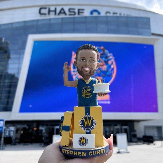 值得一提的是库里生日版的摇头娃娃也在今天亮相,不过勇士并不把这个礼物赠送给今天到场观看对奇才一战的球迷,而是送给去给G联赛圣克鲁兹勇士捧场的前1万名球迷。不知不觉,库里也带动了G联赛的球市,萌神真是这支球队的宝贝!