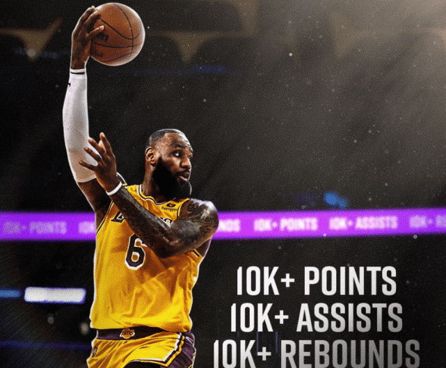 JRS直播讯 北京时间3月14日,在湖人对阵太阳的第二节比赛中,詹姆斯传球给安东尼,后者命中三分,勒布朗就此收获生涯第10000次助攻,成为NBA历史首位解锁1w分+1w板+1w助攻的球员。然而,詹姆斯的得分已接近37000分,在历史上所有助攻破万的球员中高居第一位。
