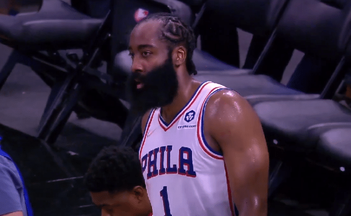 下半场,恩比德第三节大爆发,单节轰下13分带队缩小分差,而哈登3投1中仍旧表现一般,不过外线三分球终于开张;末节哈登疯狂造犯规,第四节还剩7分钟,暂停时哈登与小乔丹进行了一番交流;关键时刻,哈登再次命中三分,生死时刻,哈登突破上篮不进,马克西错失绝杀。