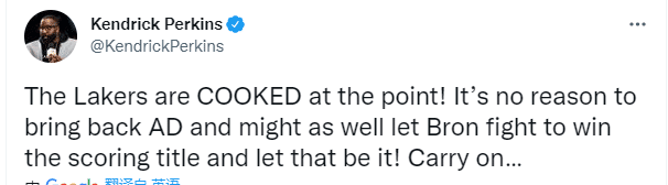 JRS直播03月14日讯 ,对于湖人糟糕的表现,名嘴帕金斯表示:湖人被打爆了,浓眉没理由重返赛场,还不如让詹姆斯为得分王而战,就这样吧。