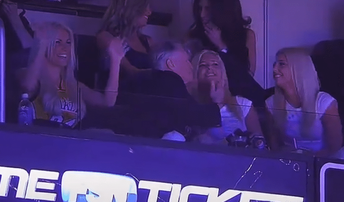 湖人队的球市也是联盟里最好的,著名的好莱坞就在这座城市,湖人每次的主场比赛总会吸引很多很多的大牌球星现场观战,下面带大家来看看,那些曾经来洛杉矶主场观看湖人比赛的美女球迷。曾经《花花公子》的创始人休·海夫纳,他曾经带着自己的三个女朋友来到现场观看比赛,镜头给到他的时候,他更是与三个女朋友(其中两人是双胞胎非常抢镜)相拥接吻,不知道现场的球迷看到这样的一幕会是什么样的感受。