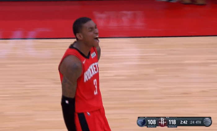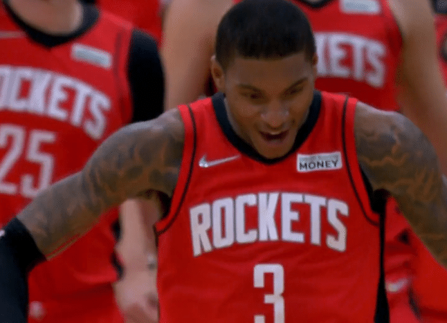 前三节,杰伦-格林贡献19分7篮板4助攻,伍德则拿到25分9篮板;末节火箭11-4领先到7分,关键时刻,杰伦-格林不讲理压哨得分,小波特持球杀到禁区上篮得分,此时小波特开心跳舞庆祝,比赛还剩2分42秒,火箭领先灰熊10分。