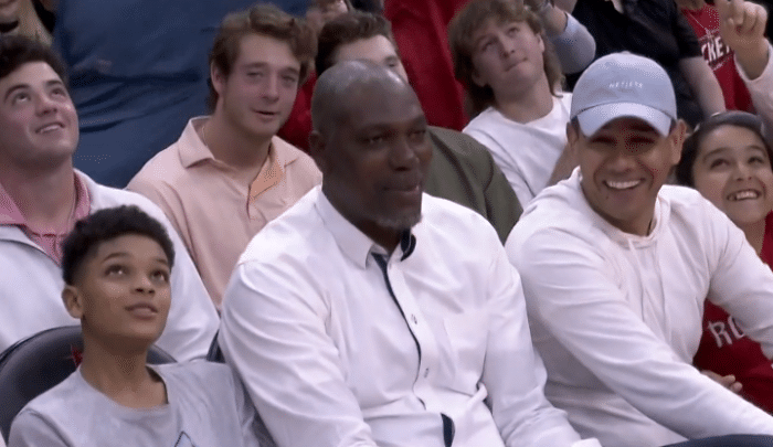 火箭名宿奥拉朱旺来到现场观战;暂停回来,莫兰特突破上篮,小波特外线造犯规三罚一中,火箭榜眼再中关键球,一番对阵,最终火箭123-112爆冷击败灰熊,终结12连败。