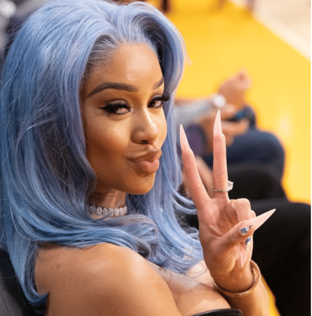紧身衣,蓝色的头发,性感的装扮让这个美女球迷顿时成为了焦点,很多球迷也对于这个美女球迷的身份起了好奇心。这个美女球迷是谁呢?事实上,如果熟悉美国娱乐圈的话,想要认出这个美女球迷并不难,因为这个美女球迷可是如今当红的说唱歌手,她的名字叫做萨维蒂。
