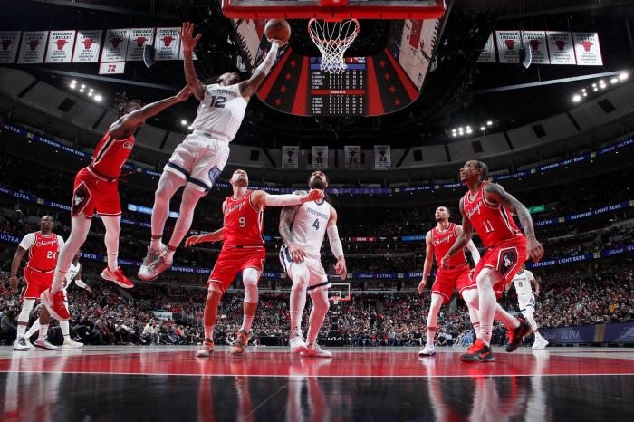 JRS直播02月27日讯 ,灰熊客场击败公牛,莫兰特全场出战36分钟28投15中、三分4中3轰下46分4篮板3助攻1抢断,空中转体360以及杂耍运球戏耍德罗赞,第三节独砍20分打疯了,关键时刻带队稳住局面,得分创生涯新高;德罗赞全场28投10中拿到31分7篮板3助攻21抢断1盖帽,末节13分险造逆转,连续8场35+纪录中断,最后时刻又吃T遭驱逐离场。