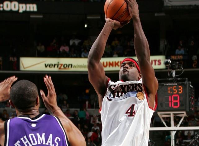 2001年2月24日,穆托姆博被老鹰交易到76人后第二天,就上演了费城生涯首秀。对活塞一战,他得到17分13篮板5盖帽,帮助球队大胜对手21分。这个赛季,穆大叔帮助76人打进总决赛,生涯第四次当选年度最佳防守球员。