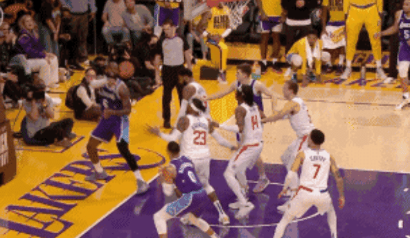 最后时刻被破坏出界之后,时间只有0.7秒,詹姆斯在底角还有投出了能够绝平的三分球,可惜詹姆斯绝平失败,湖人就这样以3分之差输了比赛。